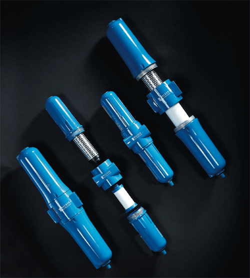 一階が0.01μmのXAマイクロフィルターで油分除去、二階がAC活性炭フィルターで臭気除去を行う、二階層フィルター。圧縮空気系統の油分含有量を0.003mg/m3まで抑えます。鉱物油、合成油の両方の除去に対応。 標準 : フロート式ドレイン排出器付き オプション : 静電容量センサー型ドレイン付き |