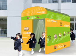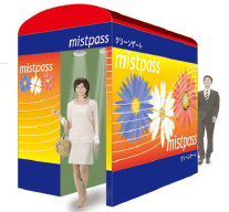 | ”ミストパス”はクリーンゲートを通り抜ける際、センサーの働きで、シトラファインが微細な霧状に噴霧され、人体をつつみこみます。数秒の滞留時間により、衣服に付いたウィルス、菌の除菌が完了します。同時に浮遊した霧状の製剤は、館(やかた)内空間に拡散し、浮遊菌、落下菌を制御する働きもあります。 この装置に、アルコール系、塩素系の薬剤はご使用になりません。 |