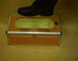 うわばき君MKXは、靴を履いたまま足をのせるだけで、自動的に靴にカバーをするための装置です。靴を手で触れずにカバーができるので、衛生的です。無理な姿勢をとる必要がないため、高齢の方やスカートを着用している女性でも、腰をかがめることなく、装着できます。電源や圧縮空気等の動力源は不要ですので、どこにでも持ち運べます。又、装置へのリフィル(カバー)の装填は、工具を使わずに簡単に行えます。